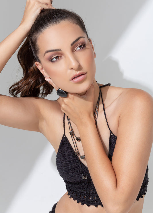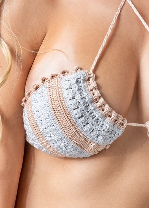 Desert Rose Bikini Top |Turquoise Almond Striped